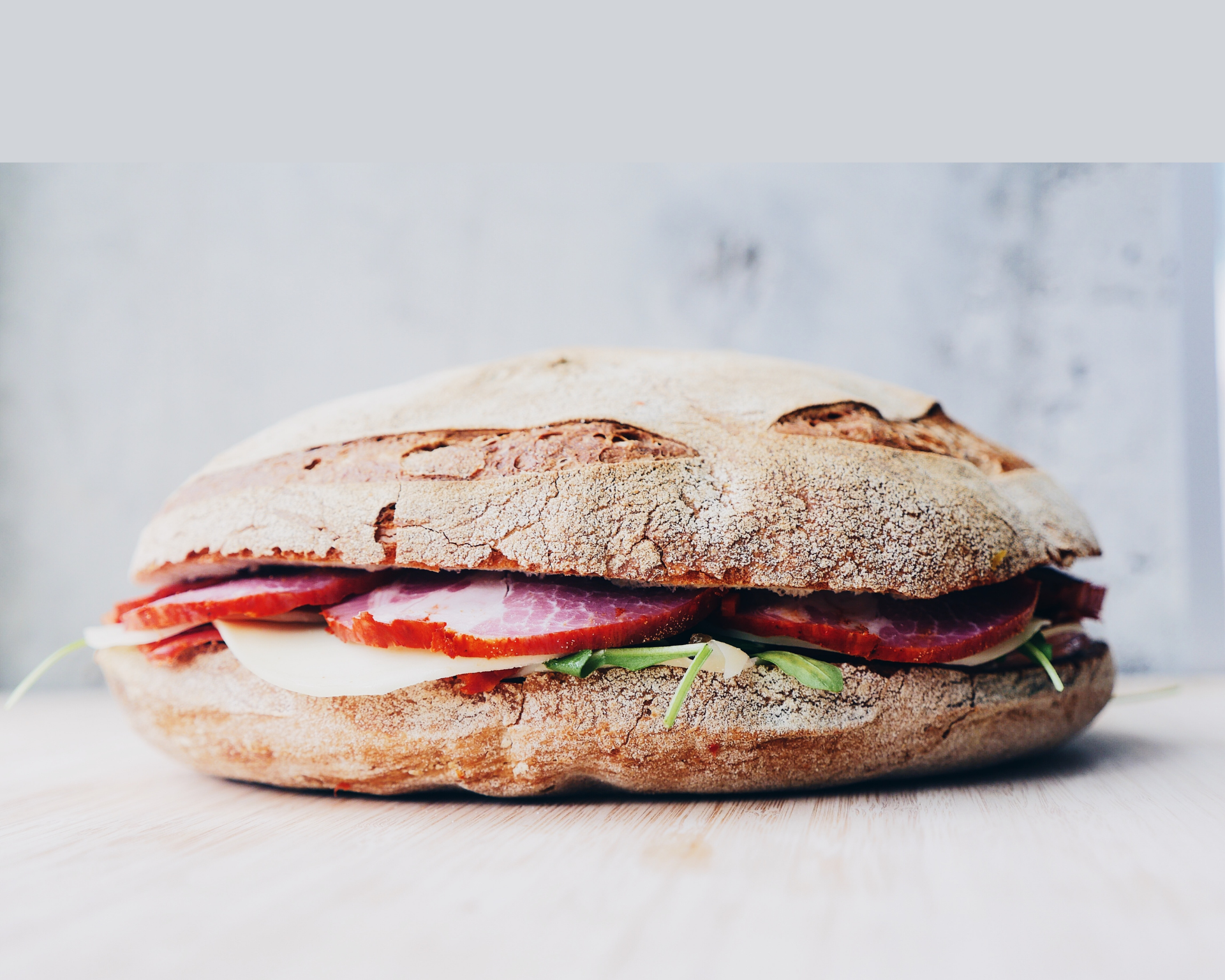 Burrito de jamón c/ queso, sopa, guarnición y agua
